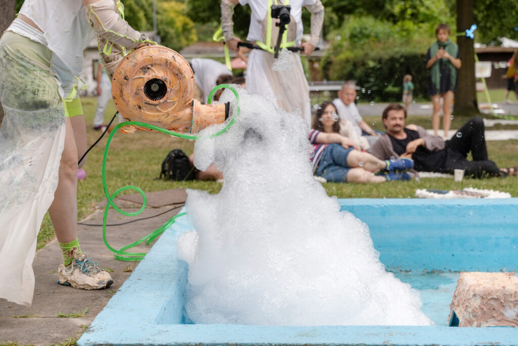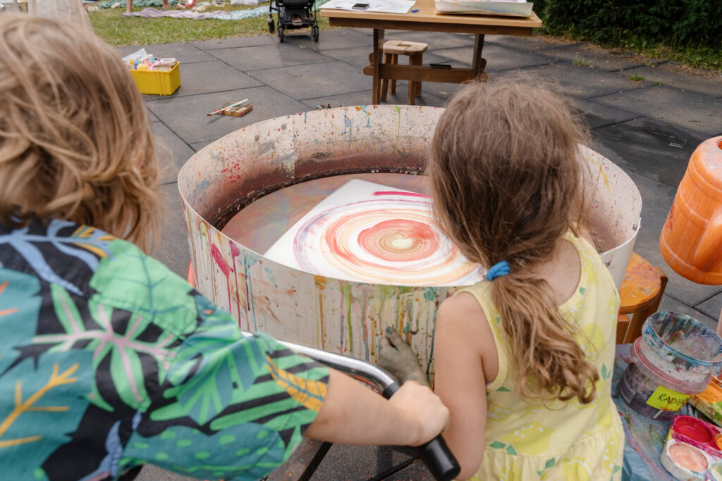 Ein lebendiger Drop-in-Workshop, in dem Kreativität und Experimentierfreude keine Grenzen kennen. An drei außergewöhnlichen Malstationen warten bunte Abenteuer, die die Fantasie beflügeln. An der Jukus-Malmaschine – einem umgebauten Hometrainer – verbinden sich Bewegung und Teamarbeit, um kreisrunde, lebendige Muster zu erzeugen. Hier entstehen aus Schwung und Farbe einzigartige Kunstwerke. Mit Murmeln, einer überdimensionalen Schublade und hochpigmentierten Gouache-Farben entstehen faszinierende Linienlandschaften, die wie von Zauberhand aufs Papier gelangen. Und für alle mit viel Puste: Mit Schaum, Strohhalmen und Seifenblasmaschinen entstehen blubbernde, sprudelnde Kunstwerke, die Luft und Seifenblasen in kreative Spielfreude verwandeln. Tauche ein in unseren spannenden Drop-in Workshop, in dem Kreativität und Experimentierfreude keine Grenzen kennen.